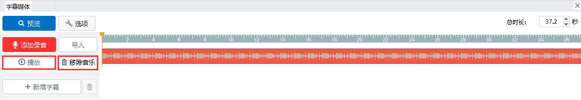 6)保存后的錄音會出現(xiàn)在字幕媒體編輯面板中??梢赃x擇“刪除音樂”或者“播放”錄音。